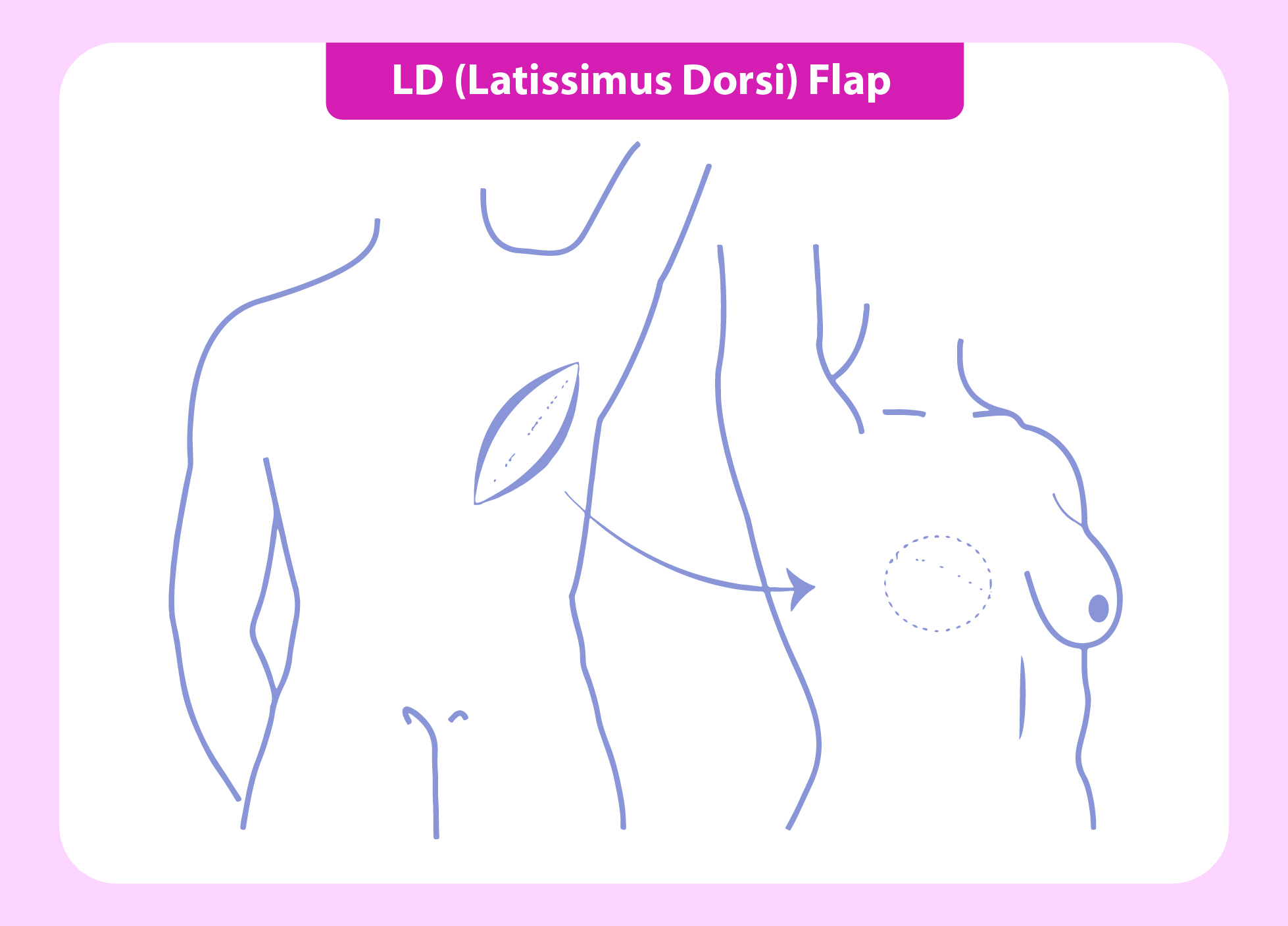 skin to the chest. The LD flap can be used alone or in combination with implants to reconstruct the breast.